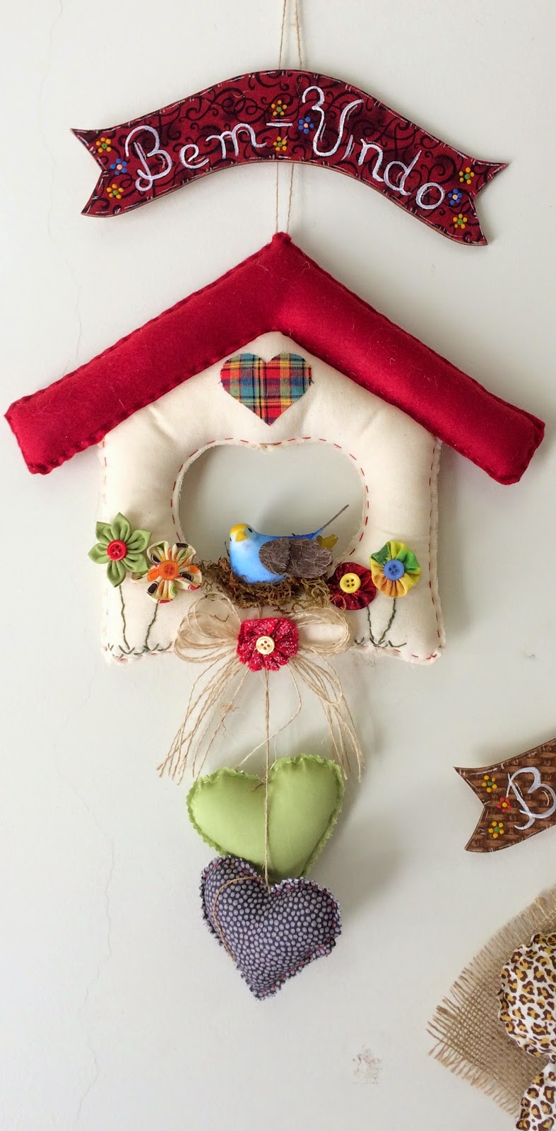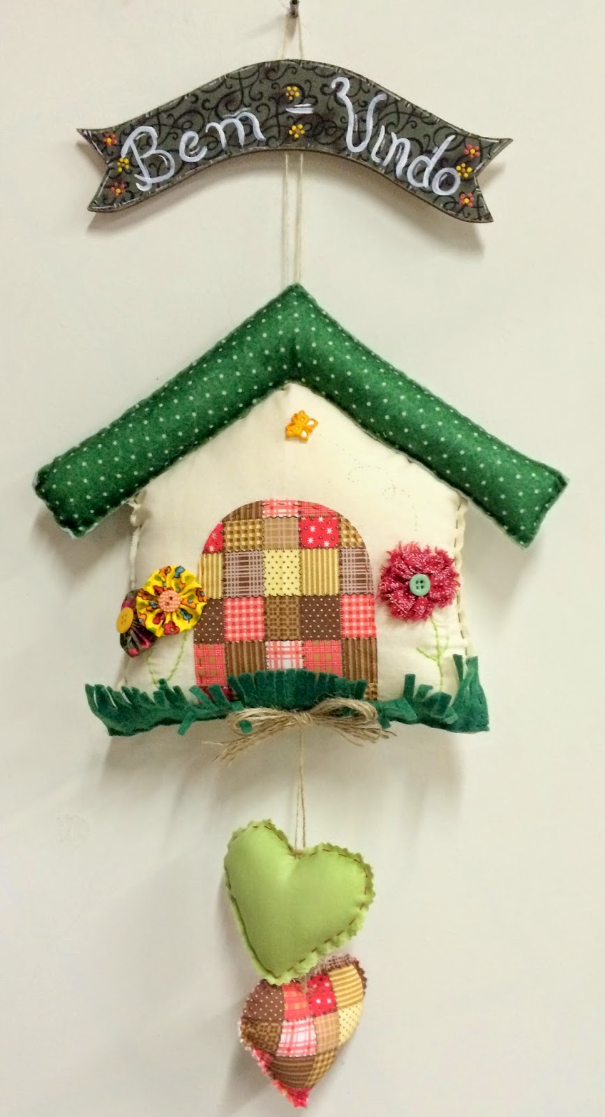 Enfeite de porta Casinhas e flores Bem-Vindo